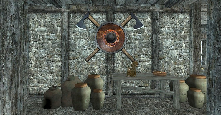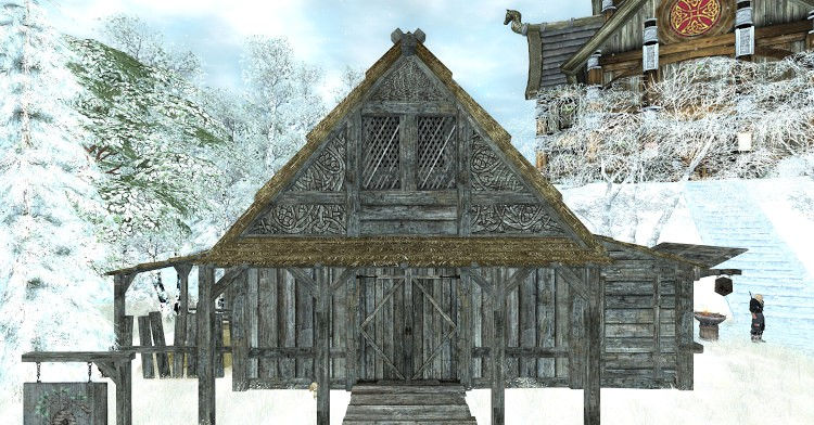 Taverne en planches de bois et chaume