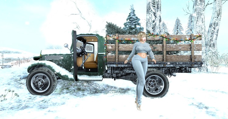 Sapin de Noël dans une camionnette