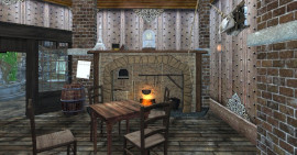 Cheminée en bois et pierre